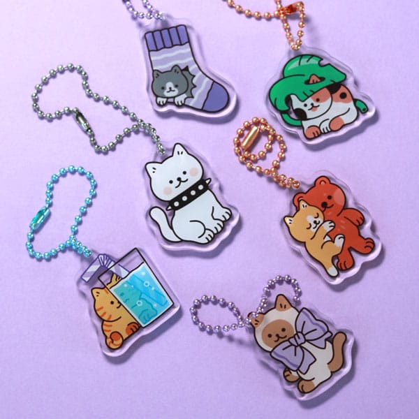 Clear acrylic charm surprise bag that has one of the 6 kitty cats inside!